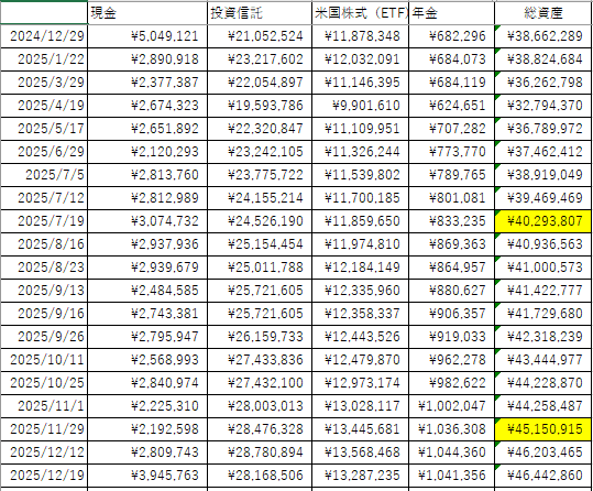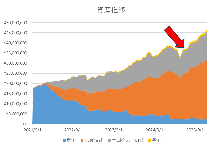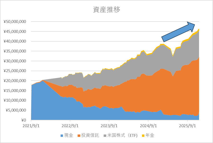 こちらは、資産形成を本格的に始めた2021年からの資産推移です。
