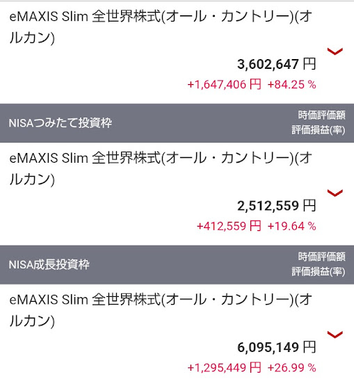 いろいろと分かれているのは、特定口座、つみたてNISA時代からやっていたり、新NISAでつみたて投資枠や成長投資枠でもわかれているからですね。